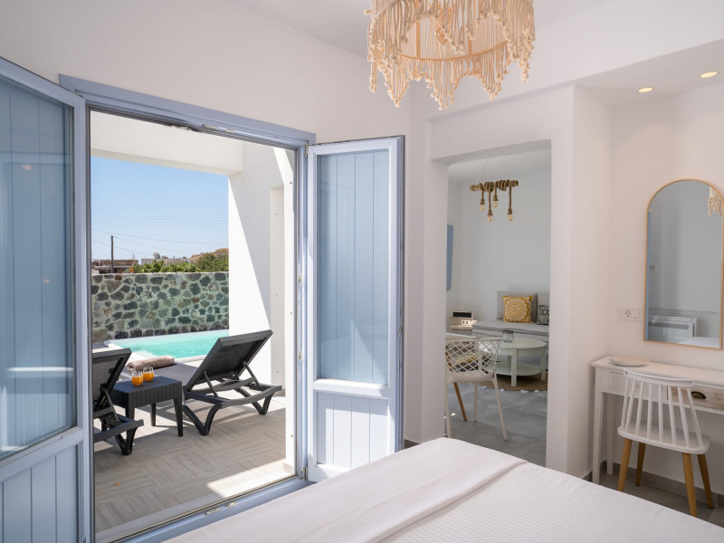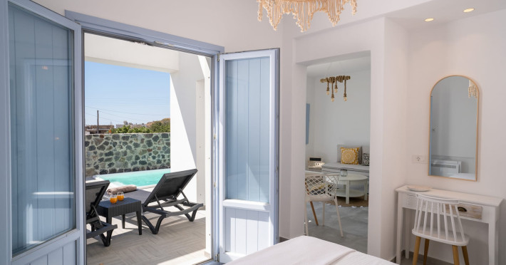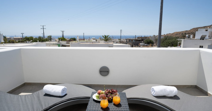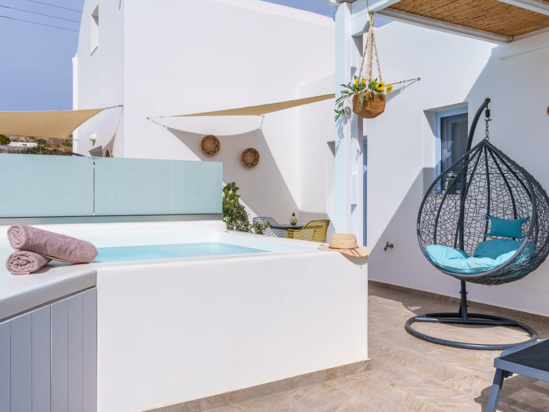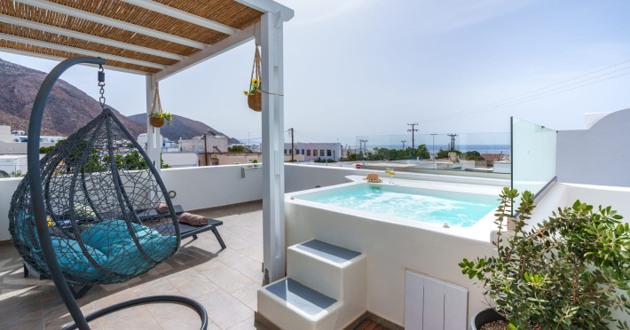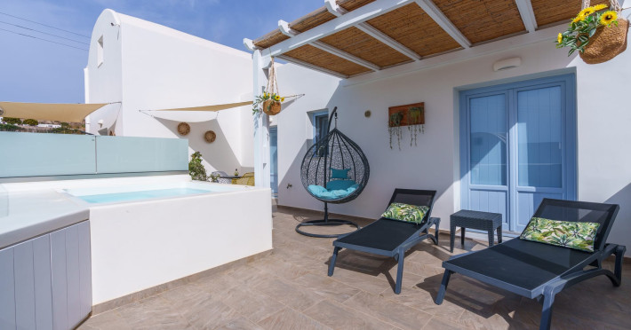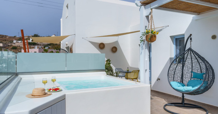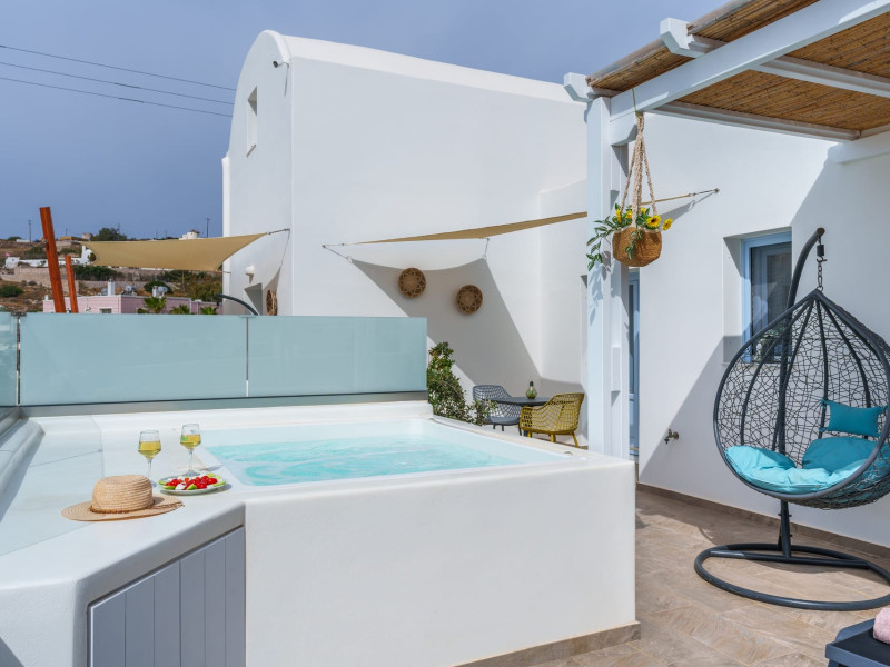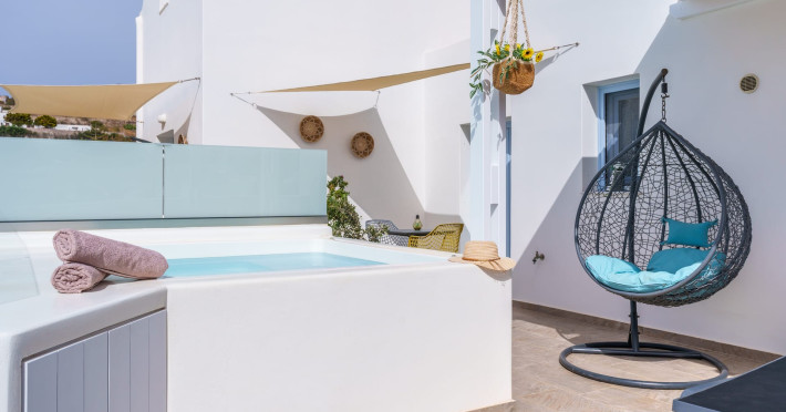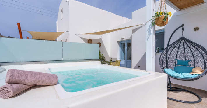 Immerse in the authentic Cycladic essence, staying at the brand new SantoRossa Luxury Villas! Located in the picturesque settlement of Emporio, each villa has been carved uniquely to host your dreams in Santorini. Fine aesthetics, distinctive decor and pure bright spaces topped with contemporary amenities, all these elements combined offer the pinnacle in Theran hospitality. The five villas stretch over two different levels, featuring a pool or breathtaking sea views from above. They all come with a comfy bed and anatomic mattress, a spacious living room, a fully equipped kitchenette with microwave oven and smart TV. The marble bathroom, designed individually for each villa, complements the interior and creates the ultimate soothing experience. Relax by the pool, dip your feet in the crisp waters and take in that magical aura all around you. Or else, gaze at the Aegean and the starlit skies, enjoying each moment like you deserve, through a wide range of services and facilities on order. Book your stay at SantoRossa Luxury Villas and join us for a vacation you will cherish for a lifetime!Immerse in the authentic Cycladic essence, staying at the brand new SantoRossa Luxury Villas! Located in the picturesque settlement of Emporio, each villa has been carved uniquely to host your dreams in Santorini. Fine aesthetics, distinctive decor and pure bright spaces topped with contemporary amenities, all these elements combined offer the pinnacle in Theran hospitality. The five villas stretch over two different levels, featuring a pool or breathtaking sea views from above. They all come with a comfy bed and anatomic mattress, a spacious living room, a fully equipped kitchenette with microwave oven and smart TV. The marble bathroom, designed individually for each villa, complements the interior and creates the ultimate soothing experience. Relax by the pool, dip your feet in the crisp waters and take in that magical aura all around you. Or else, gaze at the Aegean and the starlit skies, enjoying each moment like you deserve, through a wide range of services and facilities on order. Book your stay at SantoRossa Luxury Villas and join us for a vacation you will cherish for a lifetime!