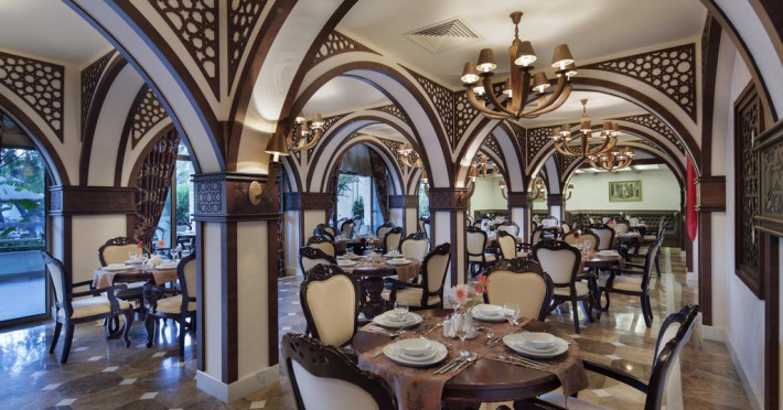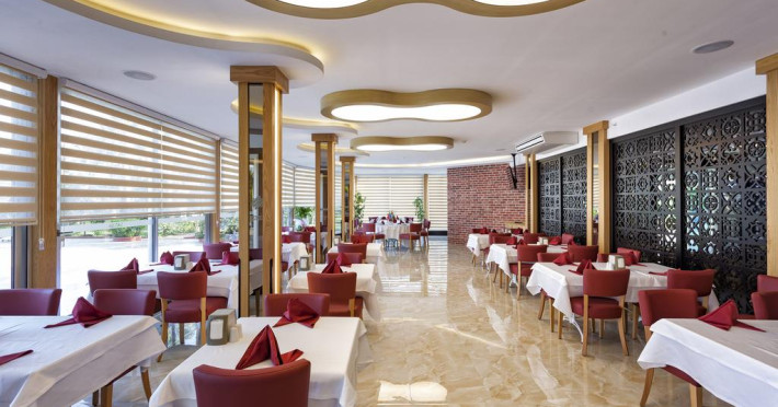 Restaurant principal pentru bufet si celelalte restaurante a la carte si baruri in cadrul complexului hotelier,piscine interioare si exterioare pentru adulti si copii, tobogane, aqua park, centru de fitness, baie turceasca, sauna, jocuri, baschet, fotbal, volei, volei pe plaja, sporturile nautice care nu necesita carburanti, acestea sunt gratuite, in plus o rezervare gratuita pe perioada sejurului la oricare dintre restaurantele a la carte.
