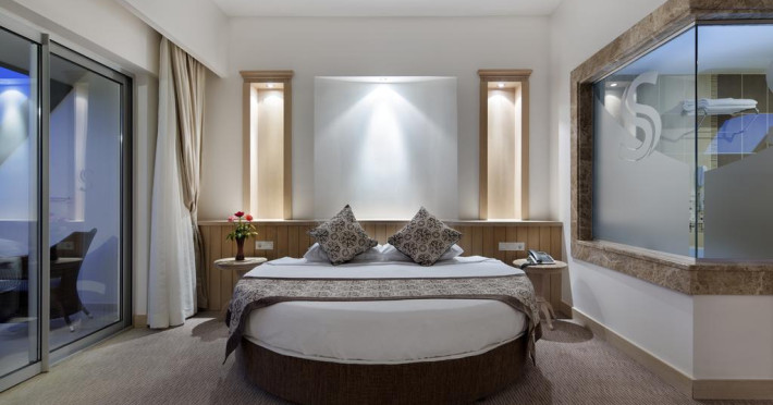 Sunt disponibile 333 camere. Fiecare cameră dispune de minibar. Oaspeții pot solicita serviciul de room service pentru a servi masa sau diverse băuturi. Unele camere au balcon cu vedere la mare, unde oaspeții pot admira apusul sau răsăritul soarelui. Camerele de la Saphir Resort & Spa sunt dotate cu aer condiționat, Tv cu canale prin satelit și seif. În camere există baie cu cadă sau duș prevăzută cu foehn. Oaspeții au acces gratuit la serviciul Wi-fi în camere. Curățenia in cameră se face zilnic. Proprietatea oferă camere pentru nefumători.