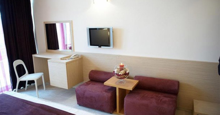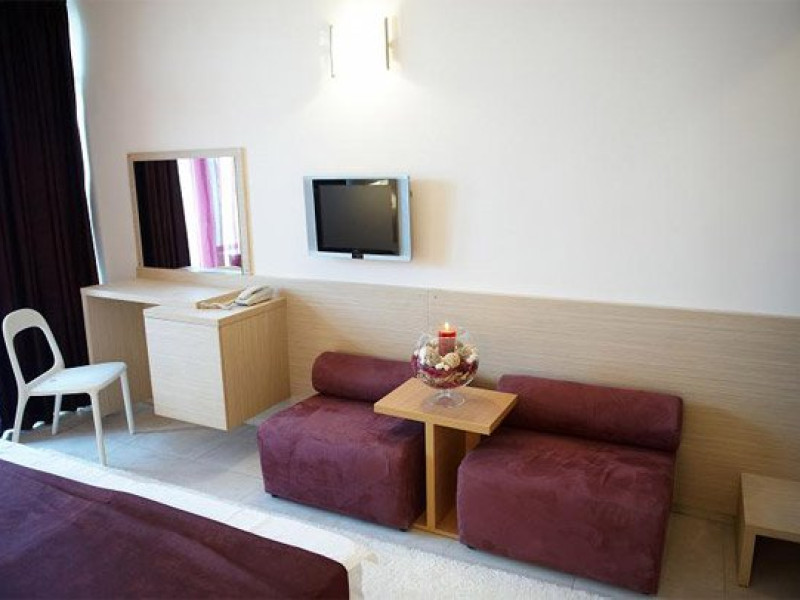 Toate camerele sunt dotate cu: terasa cu vedere la mare sau lac, minibar (racitor), baie proprie, TV LCD, cablu TV, aer conditionat, Wi-Fi, telefon, seif.