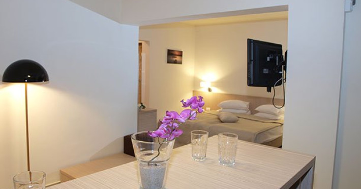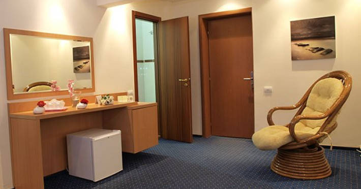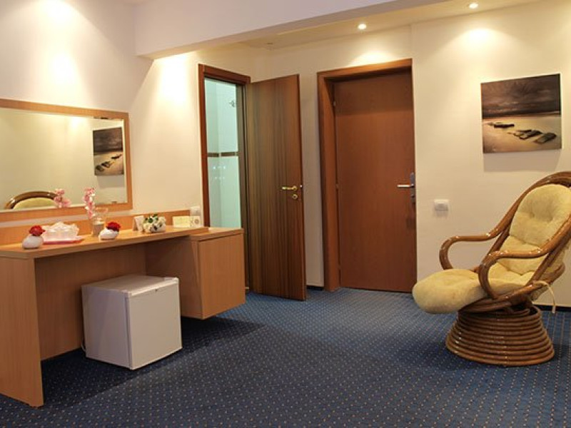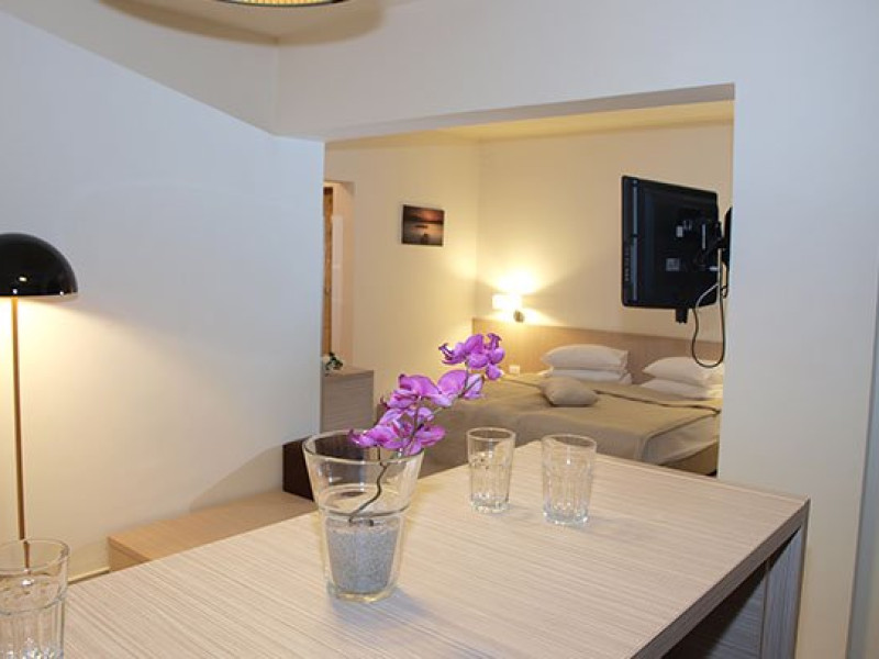 Junior Suite: Cele doua apartamente Junior sunt dispuse la etajele 1 si 2, ambele fiind cu vedere spre mare. Apartamente spatioase cu pat matrimonial si canapea extensibila reprezinta solutia ideala pentru vacantele in familie pe litoral.