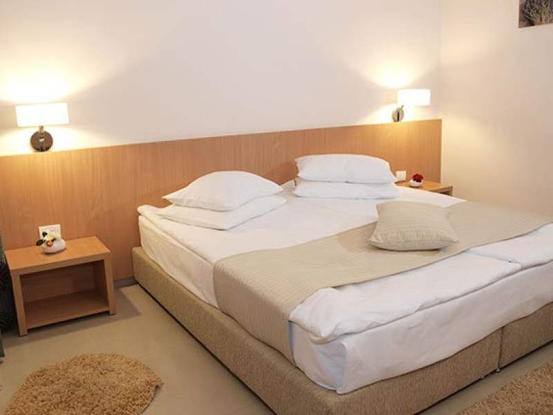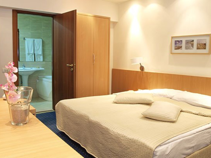 Camera dubla parter: 9 dintre ele au pat matrimonial iar restul au paturi twin. Camerele de la parter nu au balcon dar au o superba priveliste spre gradina hotelului.