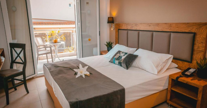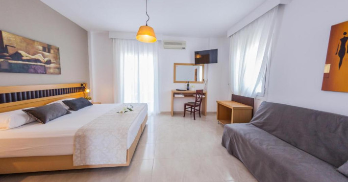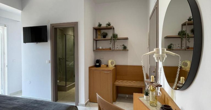 Tastefully decorated, all rooms and suites come with air conditioning and a flat-screen TV with satellite channels. Every unit boasts a furnished private balcony or terrace. A safe, a hairdryer are also available.