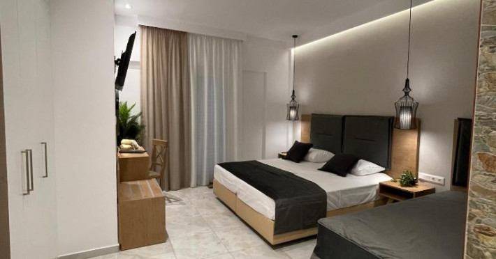 Within a 5-minute walk from Sarantis, guests can reach supermarkets and traditional taverns. The seaside village of Pefkochori offering many bars and cafes is 4 km away. Free parking is available near the hotel.