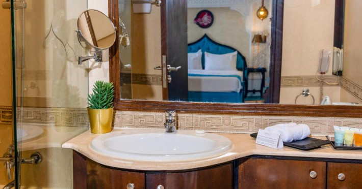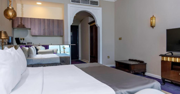 Oaspeții pot savura preparate din bucătăria internațională la restaurantul Layaly Saraya și mancăruri chinezești rafinate la restaurantul asiatic Bamboo.