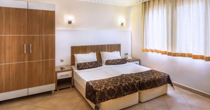 Descriere: Aflat la doar 5 km de centrul orasului Alanya si in imediata apropiere a marii, hotelul inconjurat de palmieri si curmali, este varianta perfecta pentru familiile cu copii oferindu-le pe langa numeroase facilitati, 2 piscine, tobogane si zona de plaja privata.Localizare: Hotelul este localizat la 50 de metri de plaja, la 5 km de centrul orasului Alanya. Pana la aeroportul Gazipasa, Alanya sunt 59 km distanta iar pana la aeroportul din Antalya, 130 km.