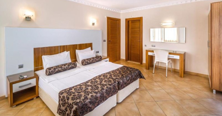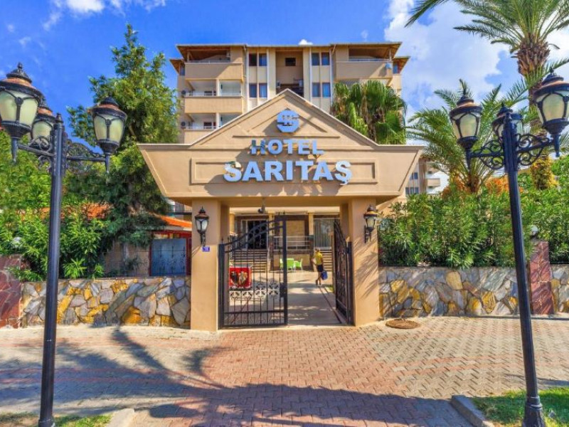 Hotelul Saritas oferă o atmosferă plăcută înconjurată de o grădină frumos amenajată, încununată de palmieri și curmali. Construit în anul 1995, cu o renovare totală realizată în anul 2010, hotelul se bucură de personal ospitalier și o locație comodă în raport cu centrul stațiunii Alanya, recomandat atât familiilor cu copii, cât și altor categorii de oaspeți. Situat pe malul mării, există un drum care face legătura între hotel și plajă, aceasta din urmă fiind acoperită cu nisip și pietriș, oferind o experiență plăcută la malul Mării Mediterane.Descriere hotel