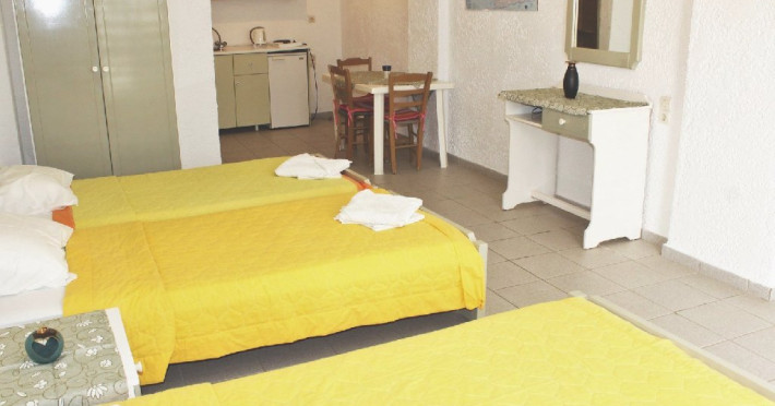 Dotari camere: studiourile sunt echipate simplu, au o baie cu dus, uscator de par, aer conditionat, televizor, mini bucatarie cu frigider, balcon sau terasa.