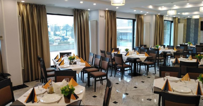 Hotelul dispune de restaurant, salon de mic dejun, terasa, parcare proprie in aer liber, sala de conferinte, 2 sali de conferinta cu videoproiector, flipchart, ecran si acces internet.