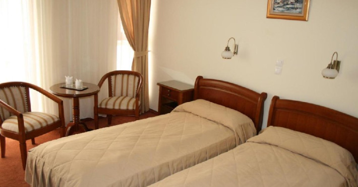Camerele duble au o dimensiune de 19 mp, aer confitionat, paturi confortabile, internet, televizor, cablu tv, telefon, minibar, balcon si grup sanitar cu cada sau cabina de dus si uscator de par. Acestea se pot rezerva in regim single.