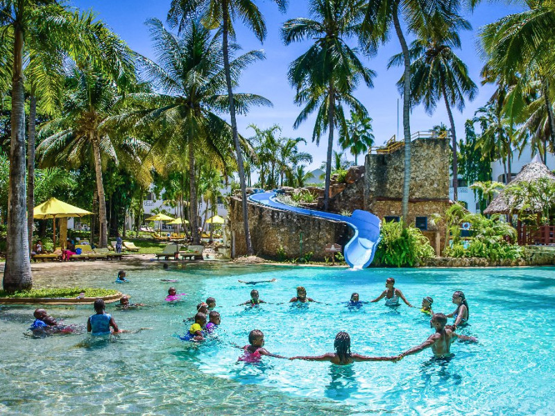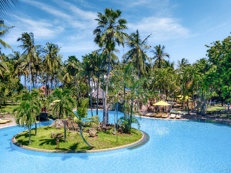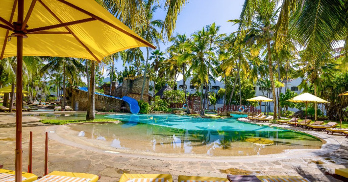 Descriere: Sarova Whitesands Beach Resort de 5 stele este amplasat pe plaja Bamburi si ofera o panorama pitoreasca asupra Oceanului Indian. Hotelul este o destinatie populara de evadare pentru familii, deoarece exista o echipa numeroasa de personal special instruit care sa ii mentina pe copii fericiti toata ziua, dand astfel parintilor posibilitatea de a se relaxa.Localizare: Sarova Whitesands Beach Resort este situat pe plaja cu nisip alb, la 20 km de aeroportul international si 14 km de centrul orasului Mombasa.