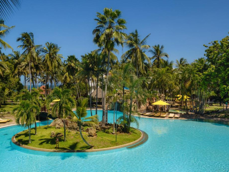 Resortul dispune de 5 piscine, inclusiv una cu tobogane pentru copii, 4 restaurante cu specific internațional și local, precum și un centru spa unde vă puteți răsfăța cu tratamente inspirate din tradițiile africane. Camerele spațioase oferă vedere spre Oceanul Indian sau spre grădinile tropicale ale complexului.