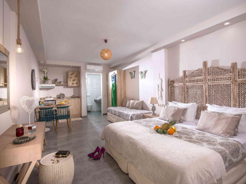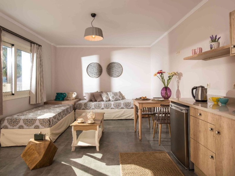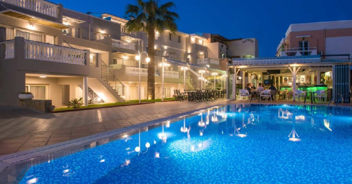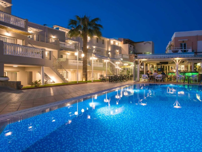 Descriere: hotelul este localizat in inima statiunii Malia, la aproximativ 1.4 km de plaja cu nisip, la aproximativ 34 km de aeroportul din Heraklion.Dotari camere: toate camerele (standard/ superi one bedroom apartment cu vedere la piscina; standard/ superior triple studio cu vedere la piscina; junior suite; standard twin studio; superior twin/dubla cu vedere la piscina) au aer conditionat, chicineta, zona de luat masa,balcon.