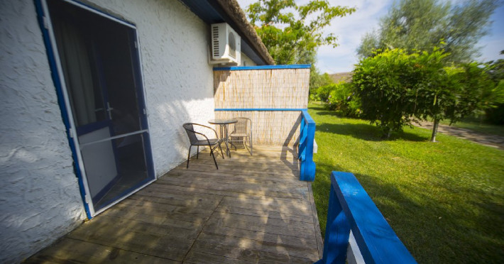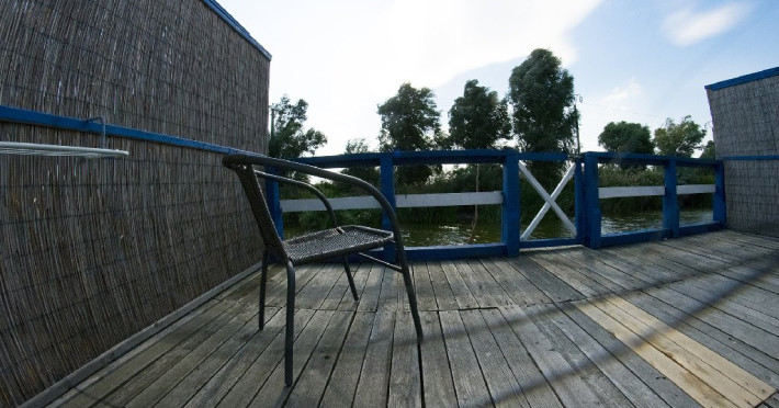 - CAMERE MODERNIZATA CU TERASA SPRE LAC- au vedere spre canalul de acces al ambarcatiunilor si cantonul Rezervatiei, posibilitate acostare ambarcatiune proprie, sunt dotate cu: 2 paturi duble matrimoniale noi, baie cu dus, aer conditionat, televizor LCD, minifrigider, internet wireless. Capacitate maxima 3 adulti.