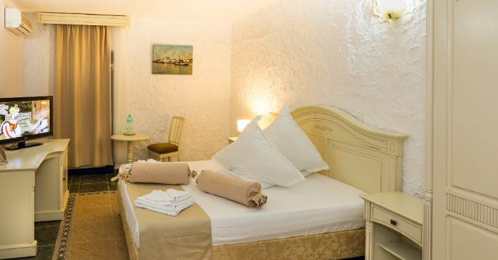 - VILE INSULA - Cele de 68 de camere duble au o suprafata de aprox. 30 mp si terasa cu suprafata de aprox. 25 mp. Toate camerele de pe insula dispun de terasa.
