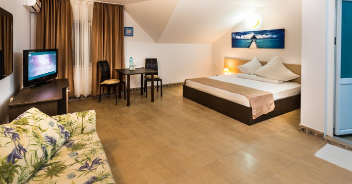 - VILA DELFINUL - amplasata pe plaja, va ofera 14 camere duble cu pat matrimonial situate la parter, etajul 1 si etajul 2, baie cu dus, aer conditionat, televizor LCD, minifrigider. Camerele nu dispun de balcon. Capacitatea maxima de cazare este de 2 persoane. Spatiul nu permite un pat suplimentar.