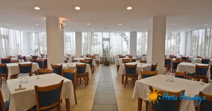 Hotelul ofera masa in sistem Demipensiune sau All Inclusive. Restaurantul Ambrosia are vedere la mare si ofera mese tip bufet iar taverna Athena de langa mare va rasfata cu preparate grecesti si internationale. Cele trei baruri din hol, de la piscina si de pe plaja ofera o varietate de sucuri si cocktailuri.