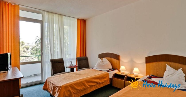 Camerele sunt dotate cu baie proprie cu dus, tv, minibar, telefon, AC, balcon exceptand camerele de la parter.