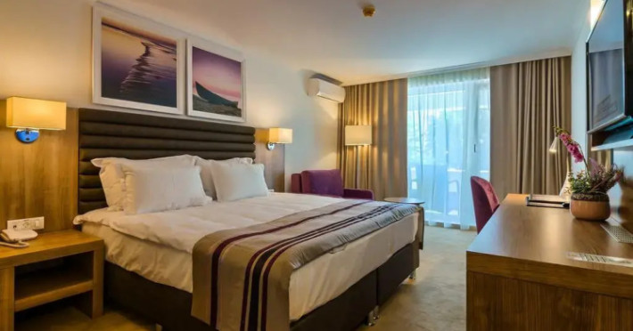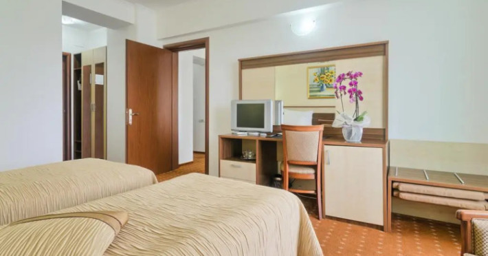 Sophisticated but very comfortable hotel Saturn is located in Costinesti. This hotel is located in 14 km from the city center. You can take a walk and explore the neighbourhood area of the hotel St. Georges Church.Sophisticated but very comfortable hotel Saturn is located in Costinesti. This hotel is located in 14 km from the city center. You can take a walk and explore the neighbourhood area of the hotel St. Georges Church.Spend an evening in a nice atmosphere of the bar. Taste the local cuisine and have a rest in the restaurant. The hotel cafe is a nice place to have a snack. Free Wi-Fi on the territory will help you to stay on-line.The beauty and wellness services: a massage room, a sauna, a steam bath and a spa center. Guests who love doing sports will be able to enjoy a fitness center and a gym. You will find these entertainment amenities on the premises: a barbeque area. Here, you can treat yourself with water procedures as there will be a pool and an outdoor pool.For business meetings, there is a conference hall and meeting and presentation facilities. Accessibility: there is an elevator/lift. There are other services available for the guests of the hotel. For example, a laundry, dry cleaning, ironing, press, car rental and a safe-deposit box. The staff of the hotel will be happy to talk to you in English and German.Spend an evening in a nice atmosphere of the bar. Taste the local cuisine and have a rest in the restaurant. The hotel cafe is a nice place to have a snack. Free Wi-Fi on the territory will help you to stay on-line.The beauty and wellness services: a massage room, a sauna, a steam bath and a spa center. Guests who love doing sports will be able to enjoy a fitness center and a gym. You will find these entertainment amenities on the premises: a barbeque area. Here, you can treat yourself with water procedures as there will be a pool and an outdoor pool.For business meetings, there is a conference hall and meeting and presentation facilities. Accessibility: there is an elevator/lift. There are other services available for the guests of the hotel. For example, a laundry, dry cleaning, ironing, press, car rental and a safe-deposit box. The staff of the hotel will be happy to talk to you in English and German.In the room, there is a DVD player, a TV, a mini-bar, a bathrobe and slippers. The room equipment depends on its category.In the room, there is a DVD player, a TV, a mini-bar, a bathrobe and slippers. The room equipment depends on its category.Know Before You Go Reservations are required for massage services. Reservations can be made by contacting the hotel prior to arrival, using the contact information on the booking confirmation. Children 7 years old and younger stay free when occupying the parent or guardians room, using existing bedding. Only registered guests are allowed in the guestrooms. No pets and no service animals are allowed at this property. Fees The following fees and deposits are charged by the property at time of service, check-in, or check-out. Self parking fee: RON 3 per day The above list may not be comprehensive. Fees and deposits may not include tax and are subject to change.Datorita dinamicitatii domeniului disponibilitatea ofertelor se modifica de la un moment la altul. De aceea ofertele sunt valabile in limita locurilor disponibile. Agentia nu este responsabila pentru eventualele neconcordante care pot aparea intre informatiile privind tarifele si alte detalii din site si informatiile primite in agentie. In aceste cazuri vor avea prioritate, intotdeauna, informatiile primite in agentie.