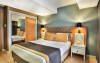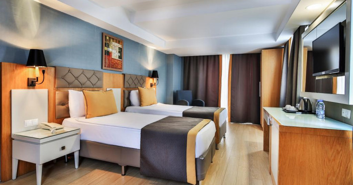 Hotelul are un numar total de 336 camere: camere standard (28mp, un dormitor, o baie, max.2+2pax), camere family (31-38mp, doua dormitoare cu usa intre ele, o baie, max.3+2pax), camere Family duplex (40mp, la etajul inferior doua paturi single, la etajul superior un pat French, doua bai, max. 3+2pax), camere Jacuzzi (40mp, un dormitor cu Jacuzzi in camera, o baie, max.2+2pax), camere Terrace Jacuzzi Deluxe (40mp, un dormitor, o baie, terasa spatioasa cu Jacuzzi, max.2+2pax) si 2 camere pentru persoane cu dizabilitati. Toate camerele au balcon, baie privata cu cada/ dus si uscator de par, aer conditionat cu program in functie de conditiile meteo, linie telefonica directa, seif (contra cost), mini bar (apa, bauturi racoritoare si bere realimentat zilnic), TV prin satelit.