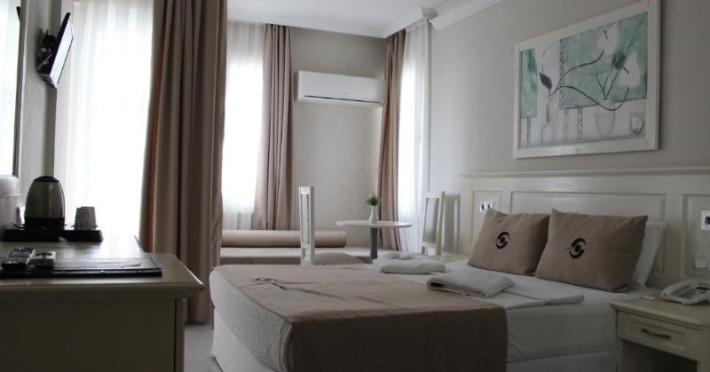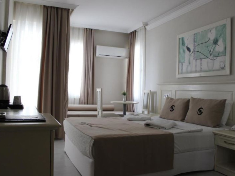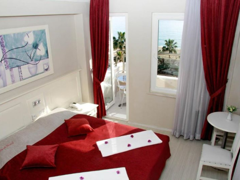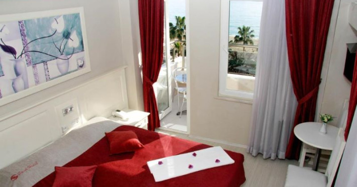 Savk Hotel este o destinație cu un rafinament de 4 stele, situată pitoresc pe malul mării, în frumosul oraș Alanya. Amplasat într-o oază de liniște și relaxare, hotelul Şavk oferă o atmosferă calmă și plină de farmec, departe de agitația urbană. Oferind o priveliște spectaculoasă la malul mării și o varietate de facilități, acesta reprezintă alegerea ideală pentru călătorii în căutare de odihnă și recreere într-un mediu elegant și confortabil.Descriere hotel