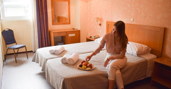 Oaspetii isi pot incepe ziua cu un mic dejun bogat tip bufet, iar mai tarziu pot savura specialităti internationale si mediteraneene. Seara, barul serveste băuturi intr-o atmosferă destinsă si elegantă.