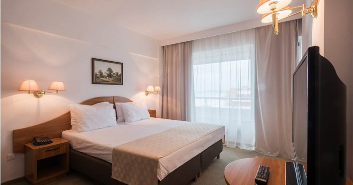 Toate camerele sunt dotate cu pat matrimonial, cartele magnetice de acces, baie proprie cu cada, TV LED, instalatie de climatizare, minibar, seif si internet.