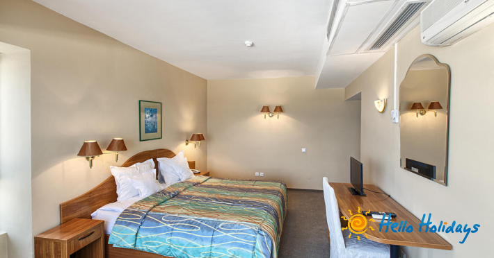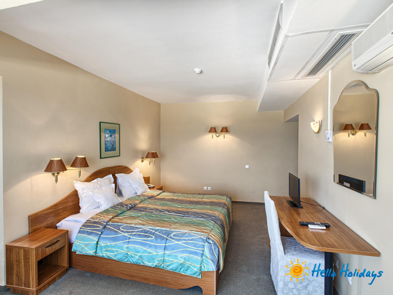 Toate camerele sunt dotate cu instalatie de climatizare, TV LED, minibar GRATUIT (se alimenteaza o data pe zi: 2 Pepsi Cola 330ml, Mirinda 330ml, 2 Seven Up 330ml, 2 ape plate 500ml, 2 ape minerale 500ml, 2 Lipton Ice Tea 500ml, 2 beri 500ml), seif, baie proprie cu cada, balcon, internet, uscator de par, telefon (in camera si baie), priza pentru aparat de barbierit in baie. Toate camerele sunt prevazute cu sistem de acces in camera pe baza de cartele magnetice.