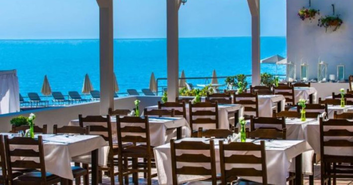 Bucătăria se bazează pe celebra dietă cretană cu produse naturale din Creta, vin local și alte rețete tradiționale în restaurant.