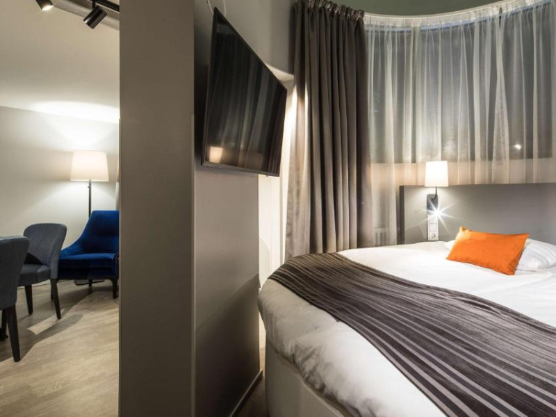 Camerele luminoase combină designul scandinav cu funcționalitatea, fiind dotate cu Wi-Fi gratuit, TV cu ecran plat și minibar. Restaurantul hotelului servește preparate tradiționale finlandeze și internaționale, cu accent pe ingrediente locale proaspete.