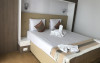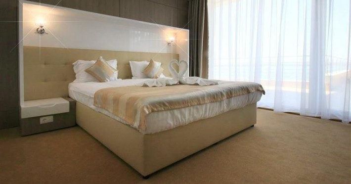 Camerele duble superior dispun de pat matrimonial (160x200), internet, racitor, tv, aer conditionat, baie cu cabina de dus sau cada si uscator de par si balcon. Au vedere spre lac. Suprafata 18 mp.