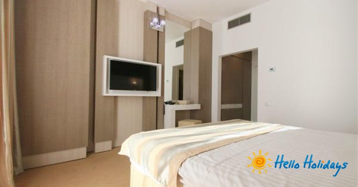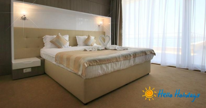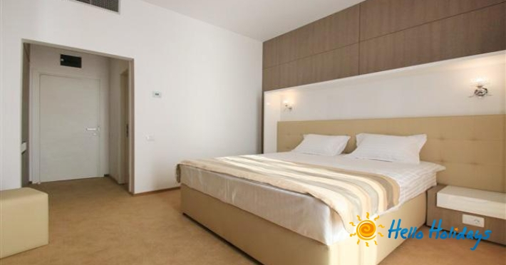 Suitele Junior se compun din dormitor cu doua paturi twin (140x200) si un living cu canapea extensibila (140x200), fara usa separatoare, baie cu cada, uscator de par si dispun de internet, racitor, 2 tv (cate unul in fiecare camera), aer conditionat. Suprafata 40 mp.