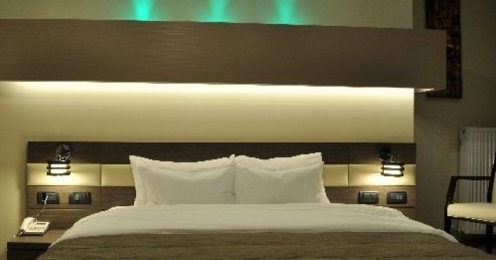 Camera dubla: cu o suprafata de aproximativ 25 mp, pat matrimonial (180 cm x 200 cm) sau twin (2 paturi de 90 cm x 200 cm), baie cu cabina de dus, seif, balcon.