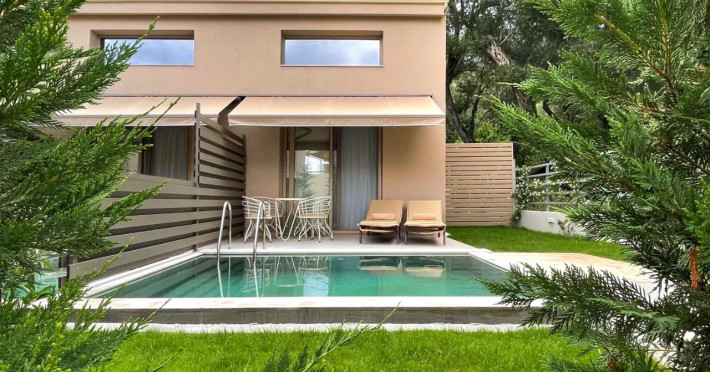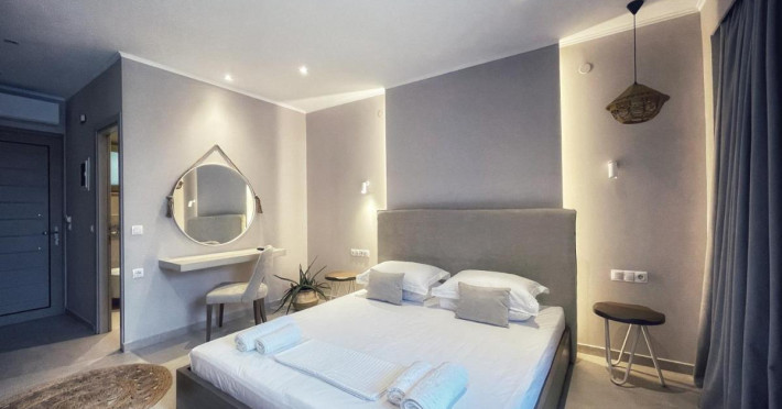 Scarabeo Hotel & Suites este un complex nou construit, situat în așezarea pitorească Valtos din Parga. Inspirat de arhitectura tradițională grecească, complexul hotelier are o senzație de sat, constând din apartamente și vile private grupate în jurul grădinilor, teraselor și piscinelor. Hotelul este compus dintr-o clădire comună principală, lângă un bazin cu apă sărată în formă de lagună, care este înconjurat de patru clădiri independente care găzduiesc camerele de oaspeți.Descriere hotel