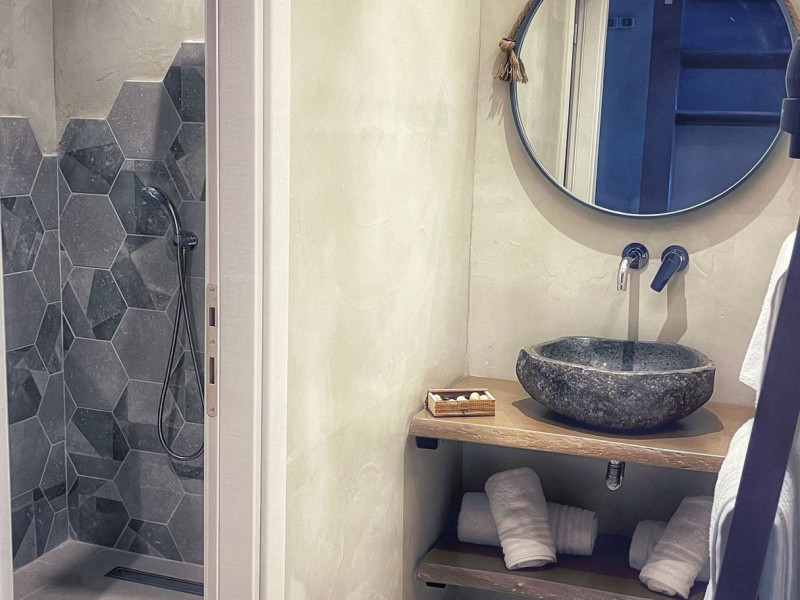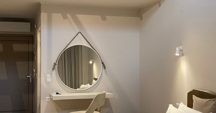 Luxurious and modern rooms decorated with earthy colors and delicate aesthetics, offer moments of relaxation and well-being.