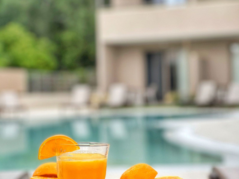 Every day a nice breakfast awaits you in a green area, next to the hotel pool. At the snack bar or on the terrace of the room, you can enjoy your drink.