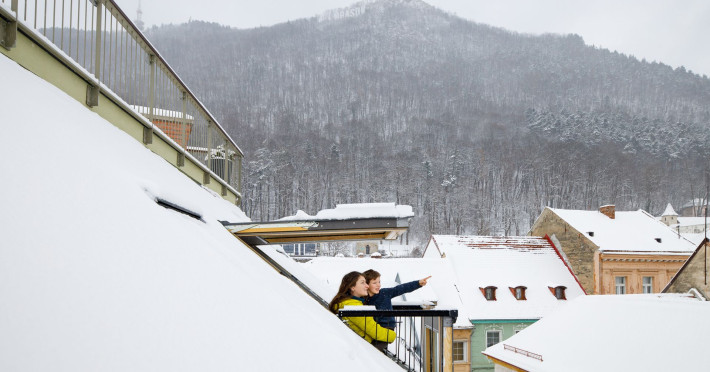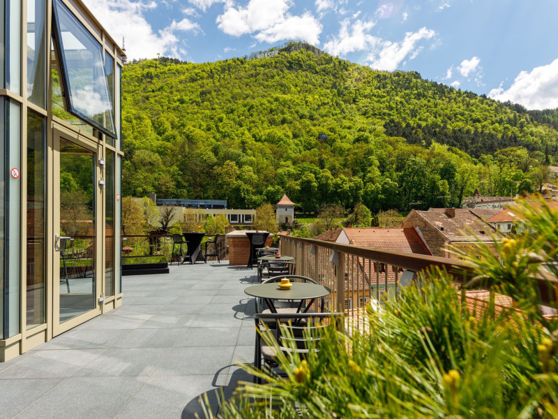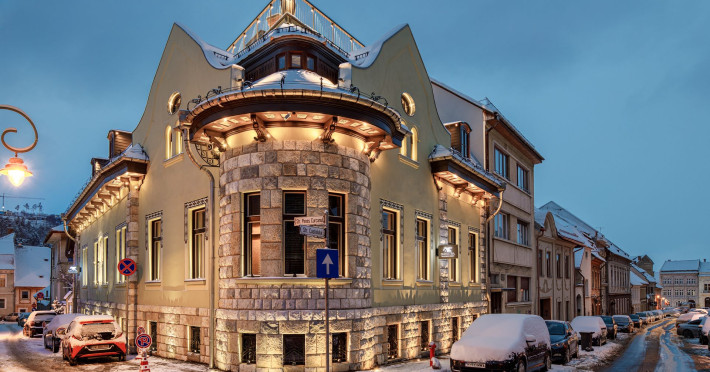 At Schuster.Boarding House you will benefit from a central positioning in the heart of the city of Brasov, at the foothill of Tampa Mountain, right by the forest. Completely restaured, the permanently lit Art Nouveau style building provides a unique 360° view of the Old City, which you can admire thanks to our indoor elevator. The hotel is innately designed to extend your senses, so let yourself be pampered. You deserve it.Datorita dinamicitatii domeniului disponibilitatea ofertelor se modifica de la un moment la altul. De aceea ofertele sunt valabile in limita locurilor disponibile. Agentia nu este responsabila pentru eventualele neconcordante care pot aparea intre informatiile privind tarifele si alte detalii din site si informatiile primite in agentie. In aceste cazuri vor avea prioritate, intotdeauna, informatiile primite in agentie.