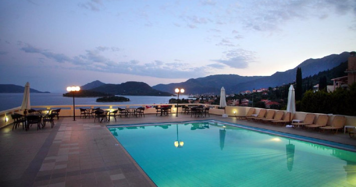 Hotelul Scorpios are o amplasare convenabila, la 1 km de cosmopolitul Nidri si la 17 km de orasul Lefkada, punand la dispozitie o piscina cu vedere la Marea Ionica si la insulele din apropiere. Hotelul ofera un restaurant care serveste delicatese traditionale, un caf?? bar si acces Wi-Fi gratuit in zonele publice.Apartamentele cu aer conditionat sunt decorate simplu cu mobilier din lemn si fier, fiind dotate cu TV, chicineta, ustensile de bucatarie si frigider. Acestea ofera deschidere spre un balcon cu vedere la mare.