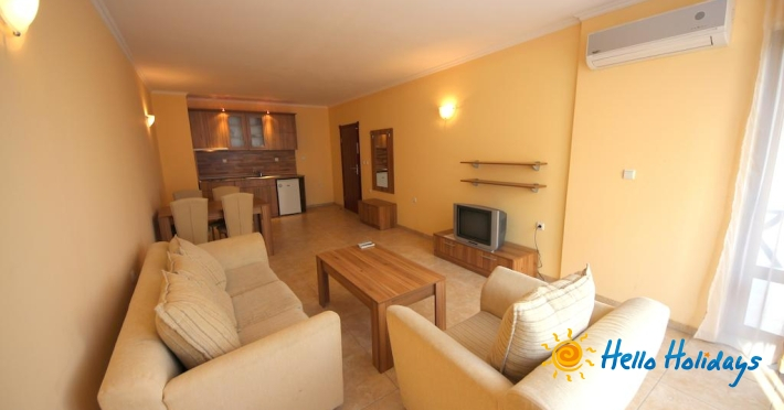 Complexul hotelier, modern si confortabil, asigura conditii foarte bune de cazare cu apartamente spatioase, fiind potrivit mai ales pentru vacanta familiilor cu copii.