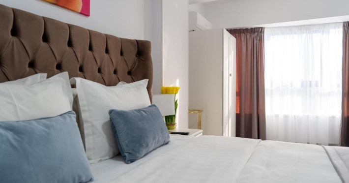 Apartamente cu doua camere (living si dormitor) amenajate pentru fiecare oaspete. Stilul business imbinat cu stilul de familie.