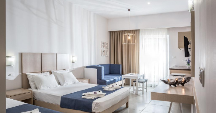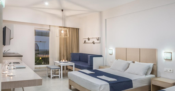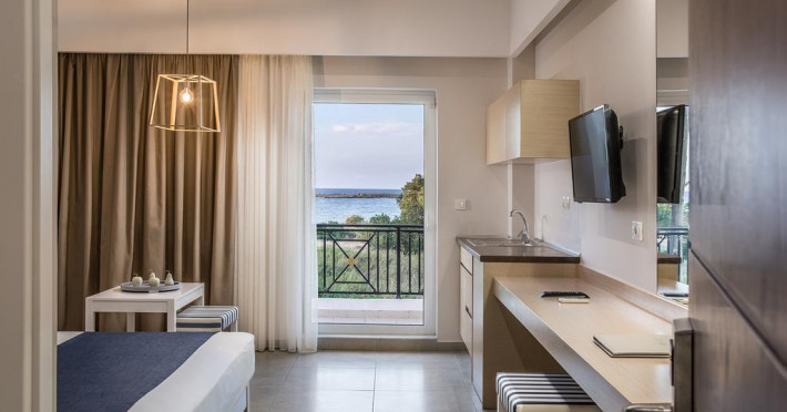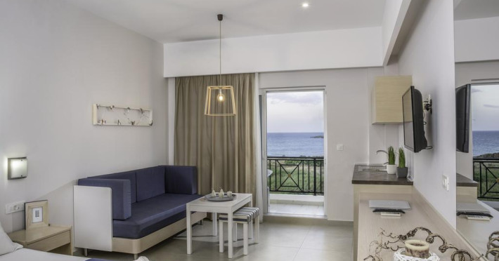 Fiecare cameră dispune de cană pentru prepararea apei calde. Oaspeții pot solicita serviciul de room service pentru a servi masa sau diverse băuturi. În camere există baie cu cadă sau duș ce are în dotare foehn și articole de toaletă gratuite. Unele camere au balcon cu vedere la mare sau la piscină. Camerele confortabile de la Sea View Hotel & Apartments au pardoseală de gresie/ marmură, aer condiționat, Tv cu canale prin satelit și seif. Oaspeții au acces gratuit la serviciul Wi-fi în camere. Curățenia in cameră se face zilnic. Toate camerele spațioase de la Sea View Hotel & Apartments au zonă de relaxare cu canapea, ceea ce oferă un plus de confort. Fiecare unitate de cazare include o chicinetă utilată cu frigider, plită de gătit și ustensile de bucătărie. De asemenea, este disponibilă o zonă de luat masa. Proprietatea oferă camere pentru familie cu o suprafață mai mare și un număr mai mare de paturi față de cele standard. Se pot rezerva de asemenea camere pentru nefumători.
