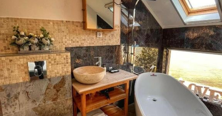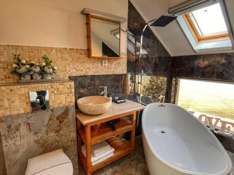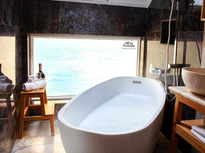 Camera este amenajata cu ferestre mari, oferind o panorama uluitoare asupra marii.