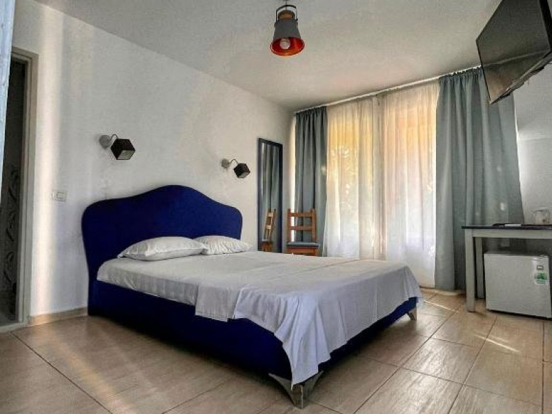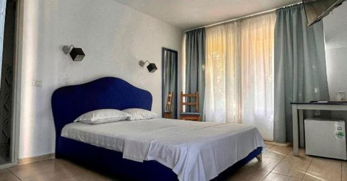 Camera cu vedere la gradina, fara balcon. Aceasta camera este un refugiu perfect pentru cei care doresc sa se relaxeze intr-un mediu natural si sa se bucure de atmosfera linistita a gradinii, dar si a marii.