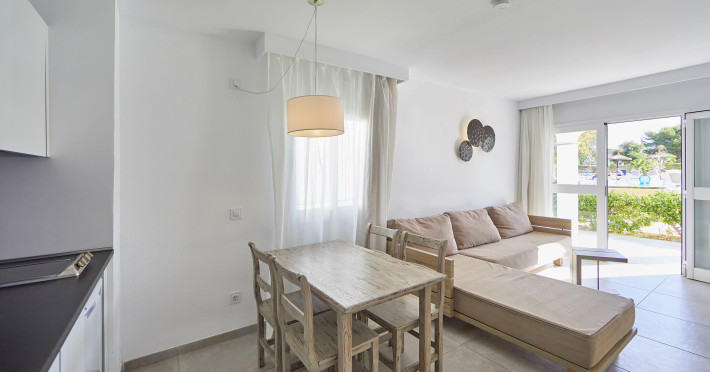 Around 400 m from a beach lies the aparthotel Seaclub Alcudia Mediterranean Resort. The hotel is equipped with a 24h reception, Wi-Fi as well as parking spaces. The hotel has Wi-Fi as well as parking spaces. In the outdoor area of the property you will find a garden as well as a pool that is open seasonally, where sun loungers, sun umbrellas and pool towels are available for free. For children there is also a children's pool. For very young guests, highchairs can be provided (for a fee). For the smallest children prams can be rented in the hotel. You can store your luggage in the hotel's storage room. If necessary, you can contact the medical centre (for a fee). Guests at the accommodation can get a wake-up call from the hotel personnel. If you want to explore the holiday region, you can use the car and motorbike rental service close to the hotel (extra fee). Due to its barrier-free facilities , such as barrier-free entrances and wheelchair accessible rooms, the hotel is also suitable for wheelchair users. Catering As catering services the hotel offers all-inclusive, half board, full board and breakfast only. Breakfast is offered from the buffet. Lunch and dinner are also served from the buffet. Your physical well-being is catered for by a buffet restaurant. Distances- Airport: approximately at 60 km