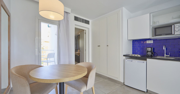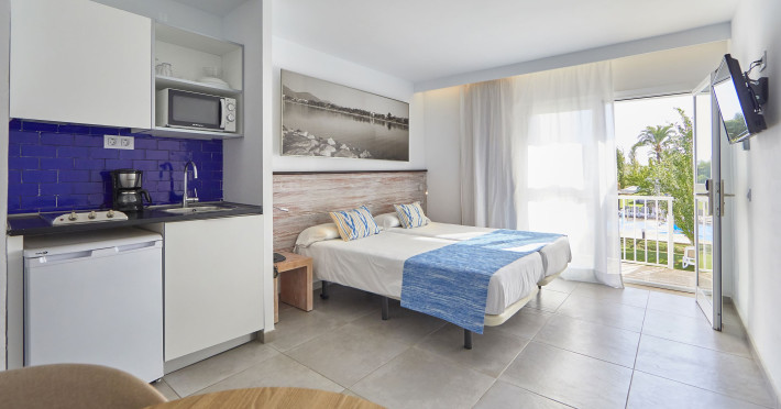 Around 400 m from a beach lies the aparthotel Seaclub Alcudia Mediterranean Resort. The hotel is equipped with a 24h reception, Wi-Fi as well as parking spaces. The hotel has Wi-Fi as well as parking spaces. In the outdoor area of the property you will find a garden as well as a pool that is open seasonally, where sun loungers, sun umbrellas and pool towels are available for free. For children there is also a children's pool. For very young guests, highchairs can be provided (for a fee). For the smallest children prams can be rented in the hotel. You can store your luggage in the hotel's storage room. If necessary, you can contact the medical centre (for a fee). Guests at the accommodation can get a wake-up call from the hotel personnel. If you want to explore the holiday region, you can use the car and motorbike rental service close to the hotel (extra fee). Due to its barrier-free facilities , such as barrier-free entrances and wheelchair accessible rooms, the hotel is also suitable for wheelchair users. Catering As catering services the hotel offers all-inclusive, half board, full board and breakfast only. Breakfast is offered from the buffet. Lunch and dinner are also served from the buffet. Your physical well-being is catered for by a buffet restaurant. Distances