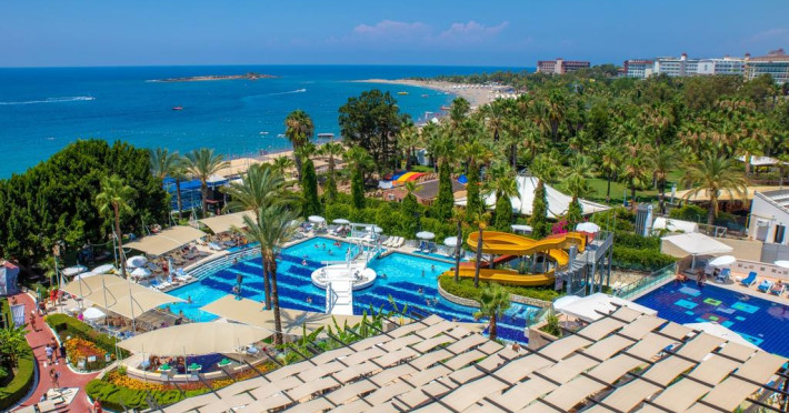 Situat chiar pe plaja in statiunea Alanya, zona Okurcalar, la 95 km distanta de aeroportul din Antalya si 30 km distanta de centrul statiunii Alanya.