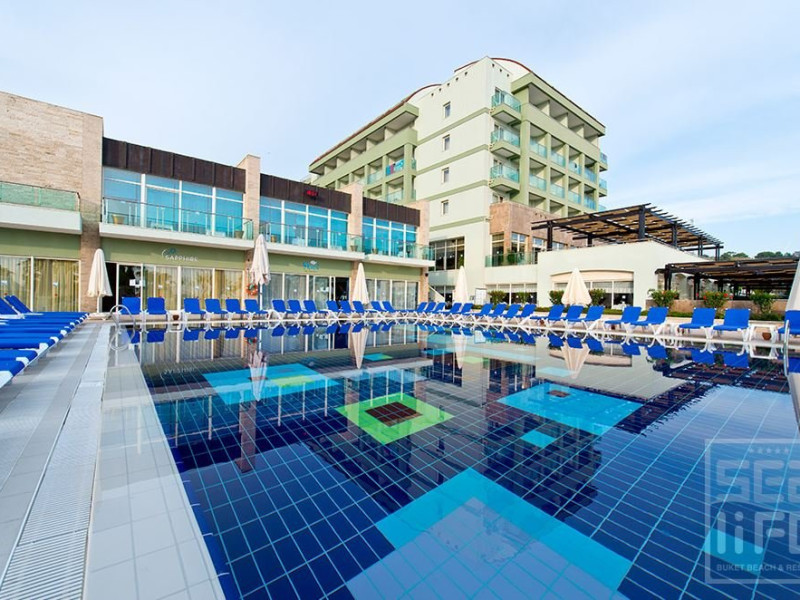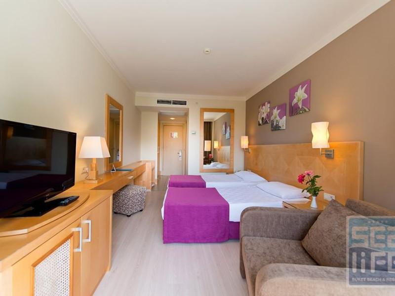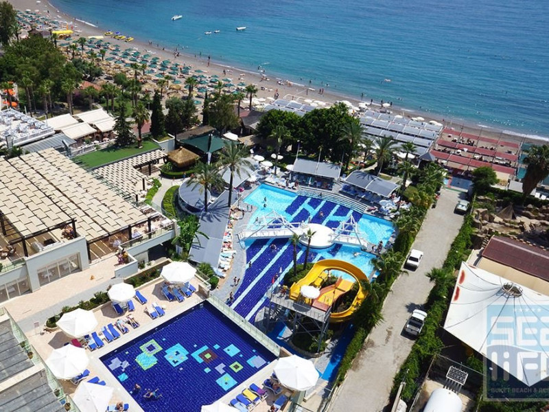 Descriere: Hotelul SEALIFE BUKET RESORT a fost deschis in anul 2004, este construit pe un teritoriu cu o suprafata de 14500 mp si dispune de 313 camere repartizate in 9 corpuri de cladire cu 3-5 etaje.Localizare: Hotelul este situat la 30 km fata de orasul Alanya, la 95 km de aeroportul Antalya si la 75 km fata de aeroportul Gazipasa din Alanya.