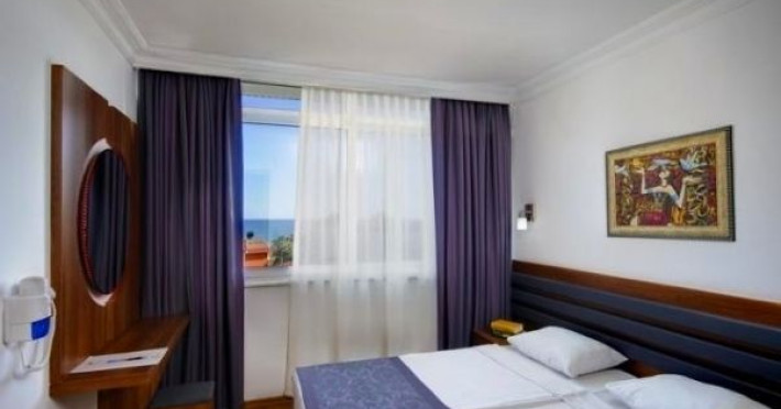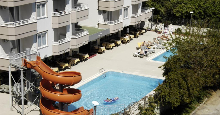 Hotelul este localizat in statiunea Alanya, la 600 m de centrul orasului si la 2 km de parcul acvatic Alanya Aquapark. Camerele sunt decorate modern si ofera facilitati precum: telefon, AC, TV Satelit, baie cu dus, uscator de par si seif. Hotelul ofera facilitati precum: restaurant international, receptie, piscina in aer liber, lift, internet Wi-Fi contra cost, activitati precum biliard, tenis de masa, masaj, biblioteca, divertisment de seara. Umbrelele si sezlongurile la plaja sunt contra cost.Descriere si facilitati hotel