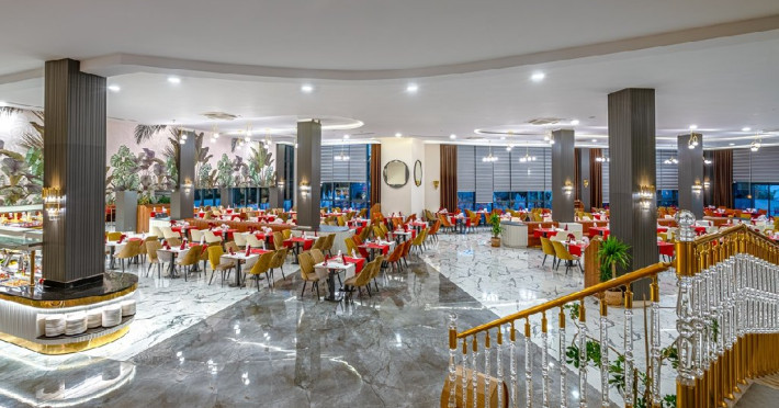 Hotelul pune la dispozitia oaspetilor: restaurant bufet, restaurant a la carte, snack bar, patiserie, bar in lobby, la piscina si la plaja, piscina exterioara, piscina interioara, piscina pentru copii, aquapark, Wi-Fi gratuit, fitness, centru Spa, tenis de masa, aerobic, volei pe plaja, darts, animatie pentru adulti si copii.