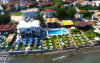 Gradina amenajata cu sezlonguri si umbrele de soare, snack bar, acces (contra-cost) la piscina de langa snack bar.
